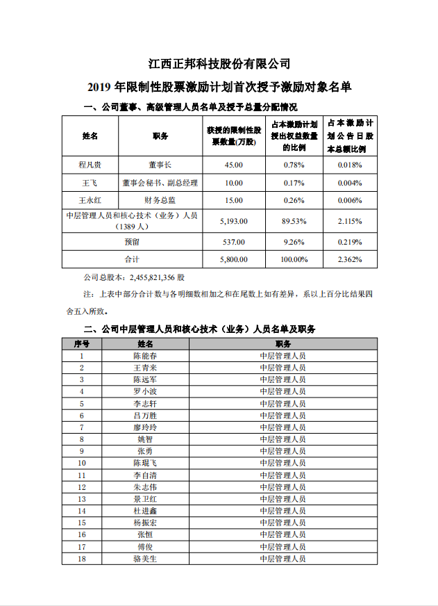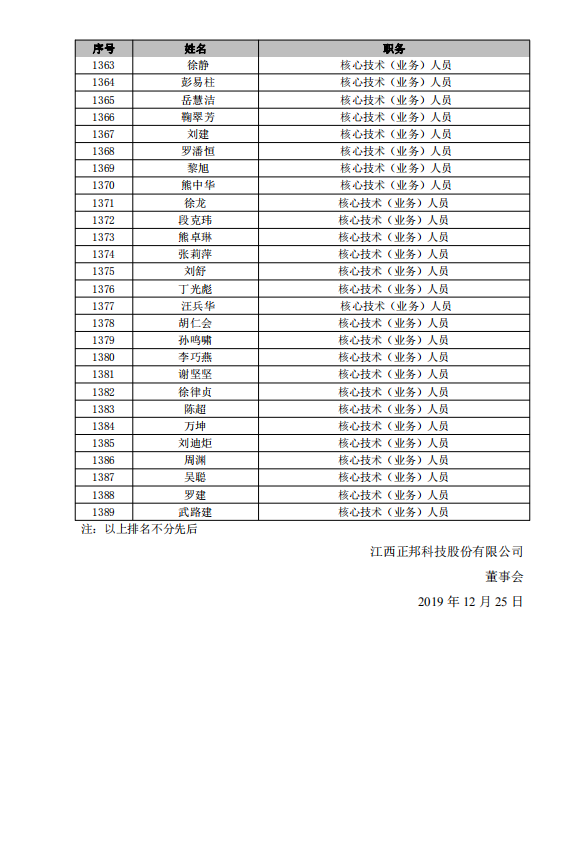 江(jiang)西正邦科(ke)技(ji)股份有(yǒu)限(xian)公(gōng)司2019年(nian)限(xian)製(zhi)性股票激勵計(ji)劃首次授(shou)予激勵對象名(míng)單(dan)